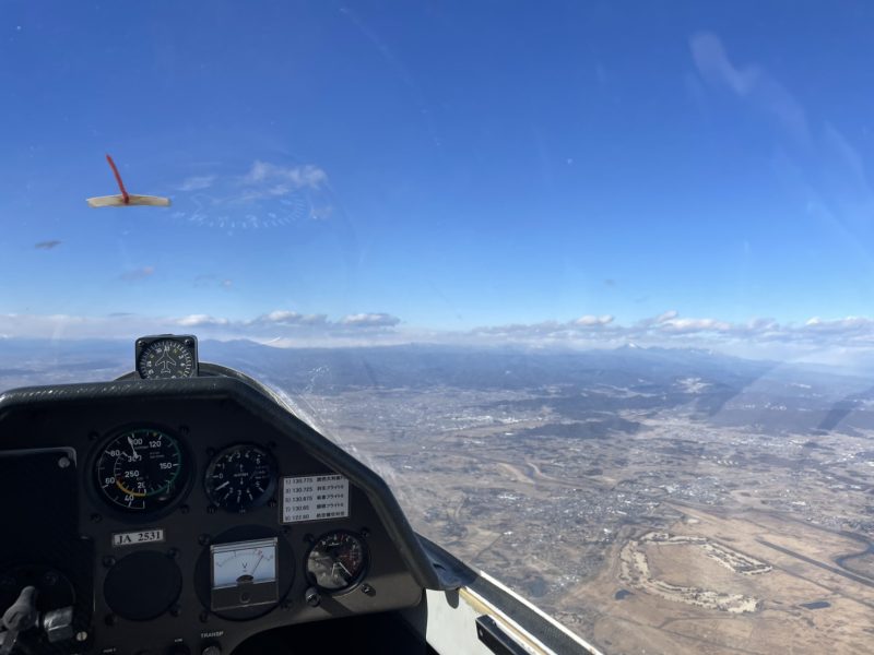 その後は板倉滑空場上空まで伸ばすも古河周辺以外の条件が厳しく、3,000ftほどで滞空の練習をしました。