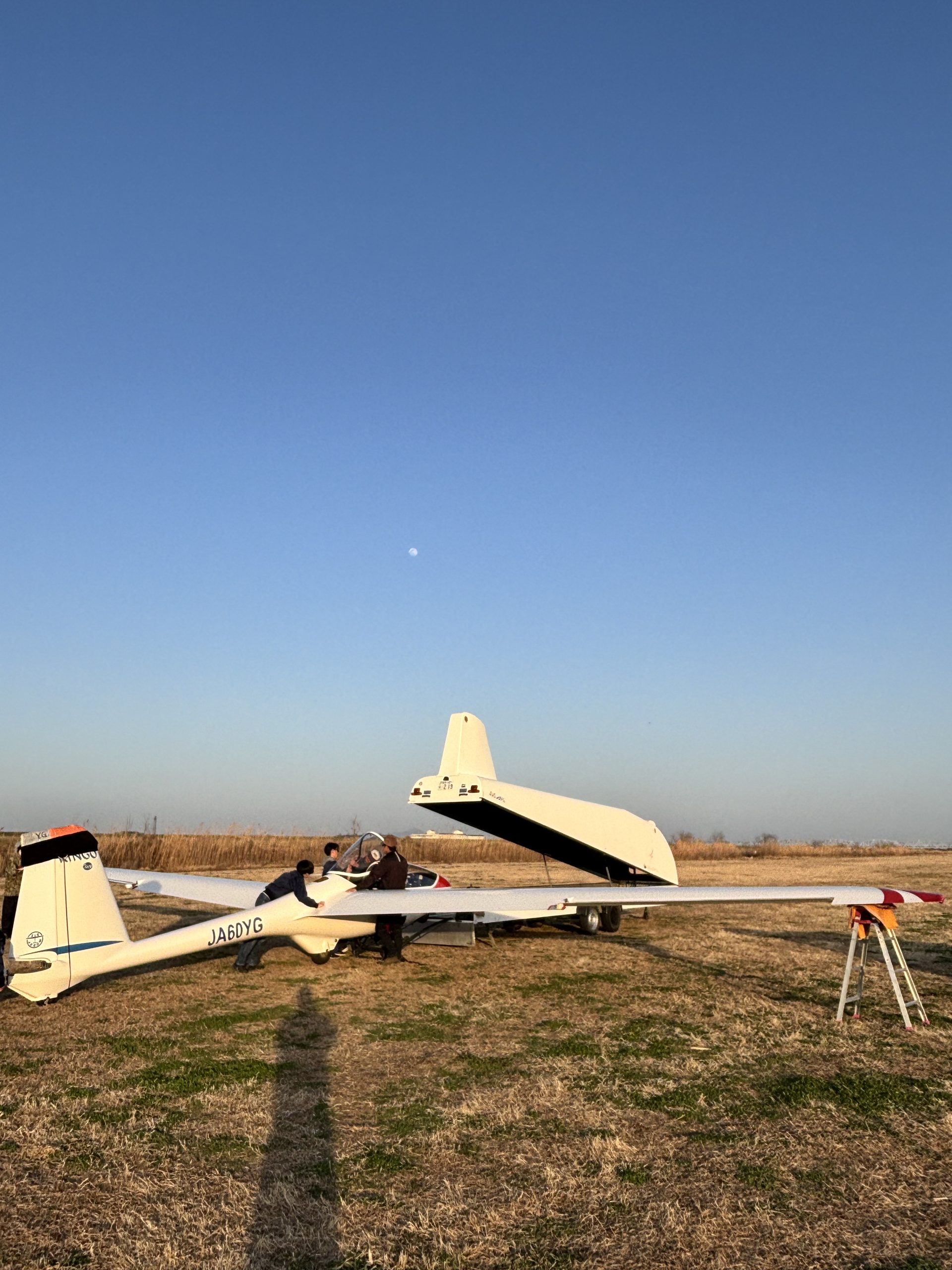 3/1 活動報告 Posted on 2026年3月9日 by nposaf 本日は春の暖かさを感じ始める天候の中、比較的少ない人数でのフライトとなりました。 1本目のフライト後、背風となったためピストチェンジを行い、反対側からの運用となりました。 また、本日はダミーブレイク(離陸曳航中に曳航索が切れてしまった場合を想定したトレーニング)も行われました。 ソロフライトで索切れが発生した際、確実に回復操作が行えるように備えておくことはとても重要です。